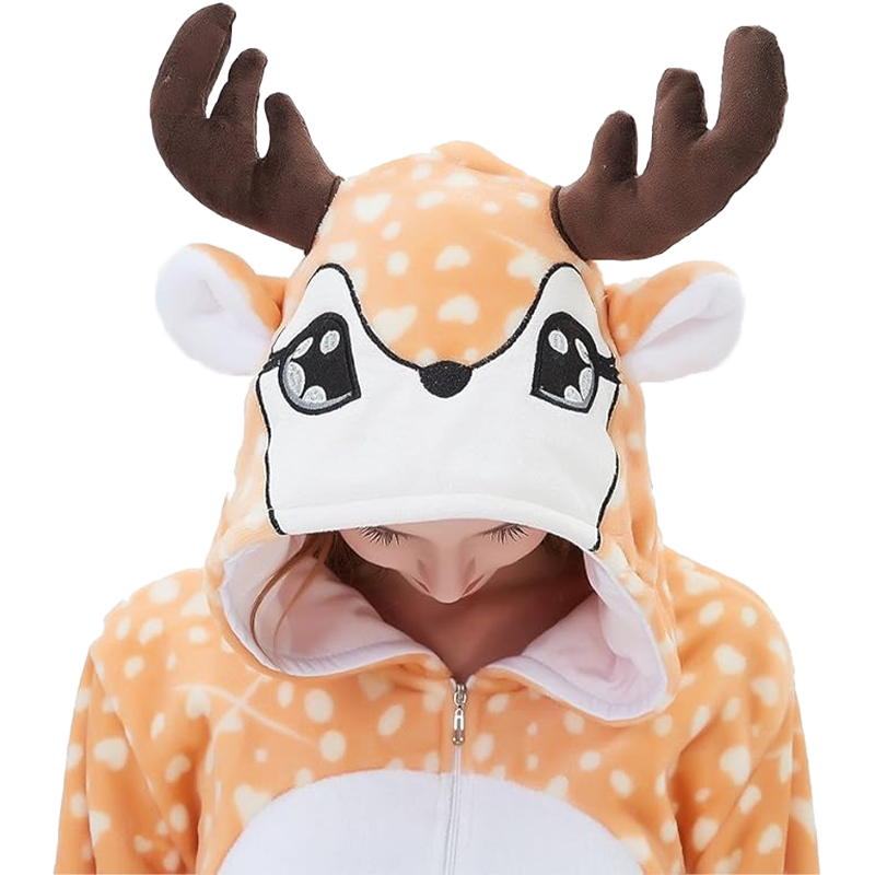 Whether you’re snuggled up at home, attending a holiday event, or spreading seasonal cheer, this deer onesie delivers comfort and style in every moment. With playful details like a hood featuring antlers and a cute deer face, a fluffy deer tail, and functional pockets, this deer onesie is ideal for both relaxation and festivities. As a reindeer onesie for adults, it’s the ultimate combination of warmth, whimsy, and holiday spirit.